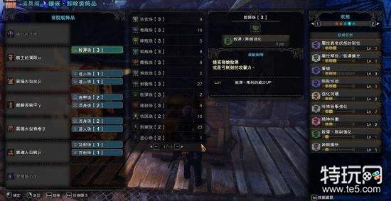 遗憾的是,这套配装在尸套γ到来之后会立刻产生变化,时效性较差。丝瓜的弱点位置不太暴露,灭龙弹又是贯通判定,所以配装采取提升站街会心为主。之所以图中没配完是因为主要技能已经全部点到了,剩余孔位与护石可以很随意。通常来说可以出看破4,保证站街会心70弱点会心100,剩余1+3孔,笔者插的耐属和耐冲(保证联机时能及时插上起爆龙弹和放陷阱捕获),solo的时候耐冲可以换缩短珠。除此之外,灭龙弹伤害正比于面板,因此佩戴无伤护石也是极好的。这里使用了两件麒麟防具都特意出了属耐,丝瓜的口气对于属性武器是毁灭性的,虽然打消果实即可解决但难免浪费输出机会,不妨插一颗耐属珠完成耐属3,免疫龙属性的异常才能愉快狩猎。即使不拘泥于属耐这个技能,麒麟γ的技能和孔位也是十分优秀了。