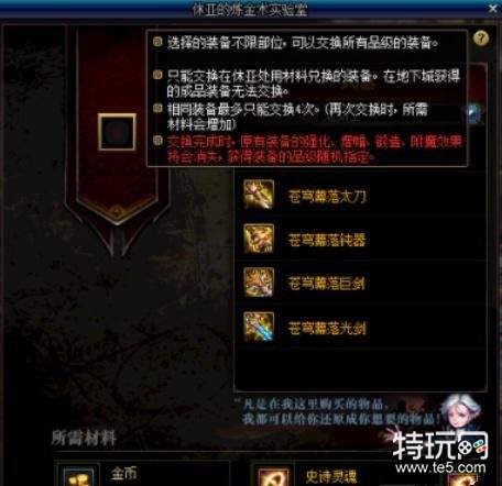将一件休亚处600材料兑换的泰波尔斯装备放入寒冰休亚(就是现在的艾肯npc休亚)的炼金装置中,就可以选择任意一件目标装备进行转换。