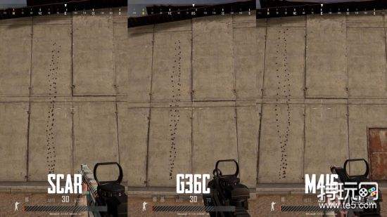 SCAR、G36C、M416全自动模式下30发子弹射速对比。
