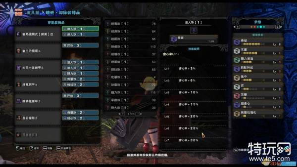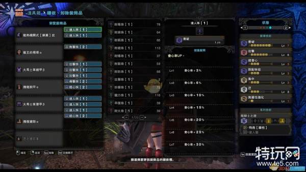 首先我推荐我最喜欢的一套配装,算上弱特80会心,在现在这个全民校服的时期,这套配装算是中规中矩,但是容错率极大,极多的一级孔,比如打尸套龙可以插耐瘴,感觉比较怂可以插3体力等等