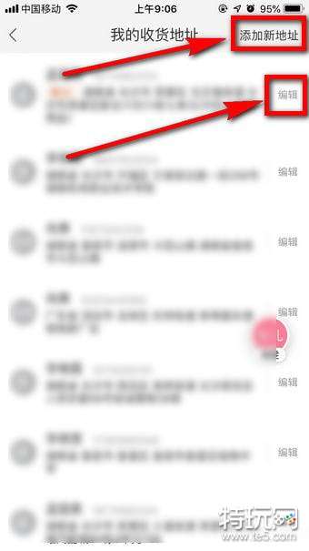 4、进入之后就可以看到现有的收货地址,可以修改自己的地址,也可以点击右上角添加新地址。