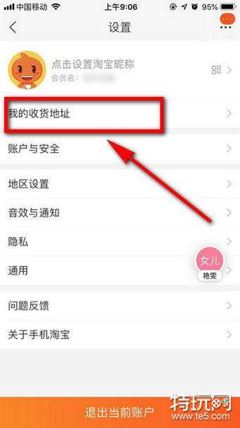 3、进入到设置里面就会看到我的收货地址,并点击进入;