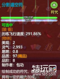 分影遁空符可以让修行者御剑千里,速度猛增。