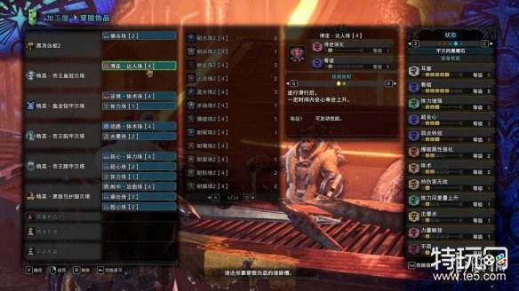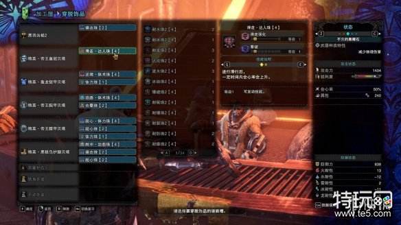 配装思路很简单,作为蓄力流武器,大锤非常怕打断进攻节奏,所以耳塞5可以算是攻击技能,由于黑狼鸟锤1404面板自带25%会心+240毒属性,可以只出到看破5,来解放更多的饰品空间。