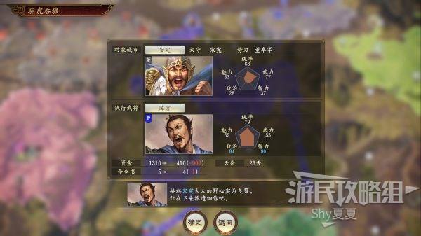 同时破坏董卓军的后防,对宋宪使用驱虎吞狼之计,让董卓后院着火。其余命令书继续探索陈留。