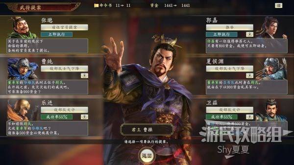 到了中旬,吕布和华雄带领2万大军向陈留赶来,期间已经占领了酸枣,我们要做的就是死守陈留,这时可以触发事件【荀彧举荐郭嘉】。这个月的提案可以出售兵粮换资金。