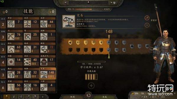 10.此时我的交易技能已经升到148。