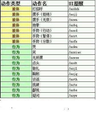 例如我们要跳舞。我们知道跳舞的拼音是"tiaowu" 那么我们在游戏中输入的指令就应该是:/nztw (注意这里的tw就是拼音的每个字的首字母)