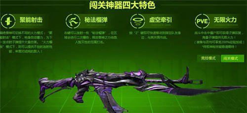 目前版本精绝神兽无疑是最受大家欢迎的武器,PVE和PVP双模式都可以使用的步枪,外观非常炫酷。当然精绝兽神的属性和技能非常强大,聚能射击这个技能让精绝兽神火力十足,打BOSS可以打出很高的输出。而秘法榴弹更是小怪的噩梦,更是有另类玩法在加子弹的地方无线加子弹进行轰炸。虚空牵引这个技能不用说,跑路或者躲技能神技。就目前猎场新图精绝古城来说精绝兽神的出场率是NO.1,加上强大的属性超高的输出,猎场新宠儿。