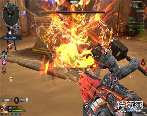至于流星火雨的范围,我个人估计了一下,大约是Z博士机甲形态战斗区域的六分之一到八分之一,区域内流星火雨只是动画特效,而伤害是超高频次的无差别伤害(可以参考灭世者的粘性弹药)。而且流星火雨对于尸兄和傀儡一样可以生效,不过释放的时候要顶在前方喷脚下。