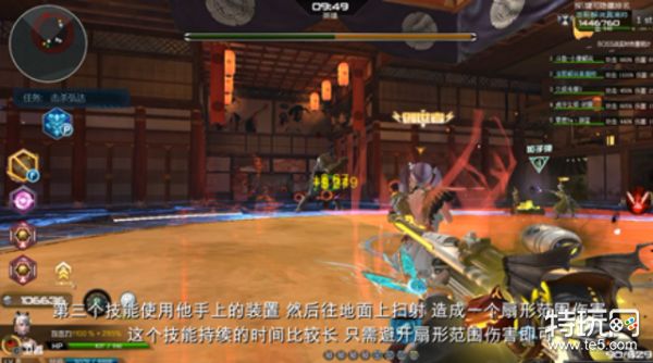 机械相扑手的第三个技能会使用他手上的武器,接着会往地面上进行扫射造成一个扇形范围伤害这个技能持续的时间较长,地面上出现红色圆圈的时候玩家需要快速做出反应进行躲避即可。