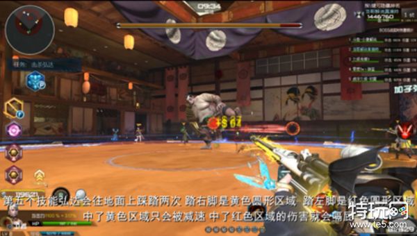 机械相扑手的第五个技能会用双脚踩踏地面,这个时候需要注意机械相扑手两只脚都会进行践踏并且范围较大,踏右脚是黄色圆形范围踏左脚是红色圆形范围,中了黄色范围只会被减速中了红色圆圈的伤害就会被秒,这个技能只需在机械相扑手踩踏下来的瞬间跳一下就可以躲避十分简单。