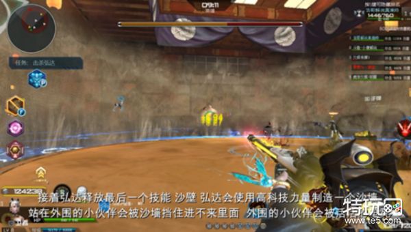 我们开始介绍机械相扑手的技能,小伙伴们知道了BOSS的技能之后到了正服会更轻松的消灭BOSS啦,介绍技能之前我们首先要注意一点场景边缘蓝色圆圈,我们站的圆形平台的外围蓝色范围有装置,如果你站到外围会持续掉血最好就是站在圆形平台内打BOSS即可。