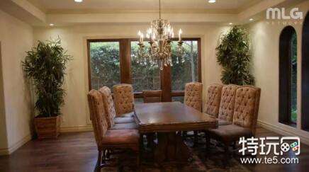 门廊的另一侧是餐厅。这里有一张能容纳8人左右的豪华餐桌,还配有一盏巴洛克吊灯。不过这个房间的利用率很低,因为选手们通常在厨房解决他们的粮食需求,只有特定的晚宴才在这里举办。
