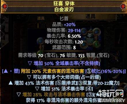 只需要洗出附加20%元素伤害的混沌伤害这条词缀,然后剥离掉其他词缀就可以多大师!这里应该都知道做法我就不做过多介绍了!