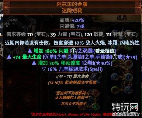 深渊珠宝必备一颗必有词缀:受到伤害后短时间内增加2%法术和攻击躲避几率!提高双闪很重要的手段了!