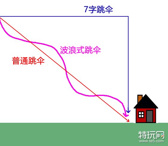 在随后的版本中这两种方式可以说统治很长一段时间,对于那些普通的休闲玩家来说常用的还是最普通也是最慢的直接朝着目标斜飞而去的普通跳伞方式。对于那些更进阶的想要追求好成绩的玩家都会使用7字形的跳伞方式。