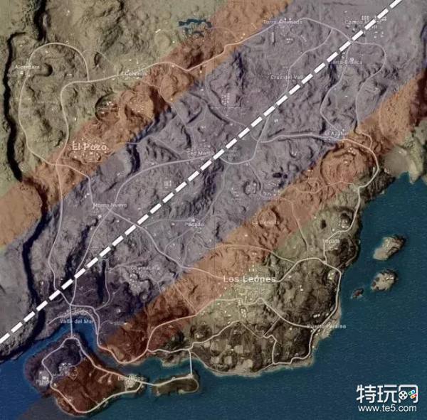 假设白色虚线是我们游戏中的航线,那么红色区域内则是我们可以通过正常飞行所到达的位置,而蓝色区域则是我们能够通过波浪式降落完成速降的距离,距离大约1km内。