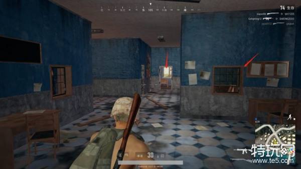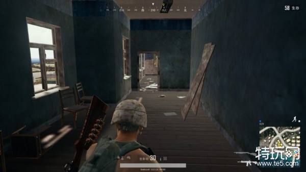 这是进大门的右侧,小心右手窗户会有人阴你,以及中间那个门口也可能有人在卡你的视野,尽量不要在一层多停留,毕竟这个位置四面通风,很容易从四面八方吃枪子。