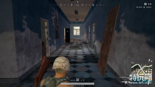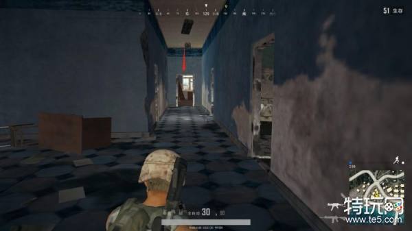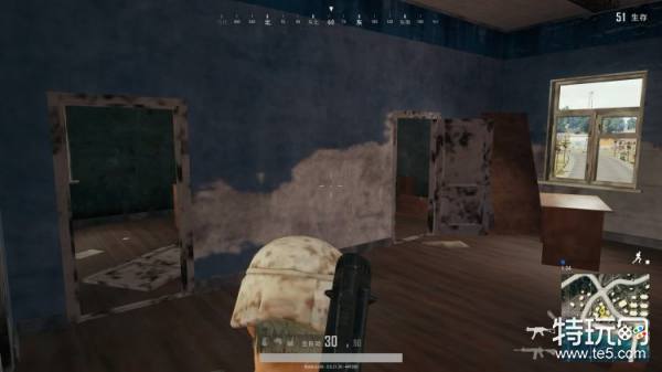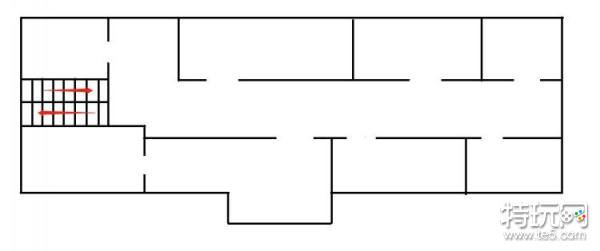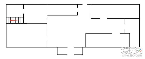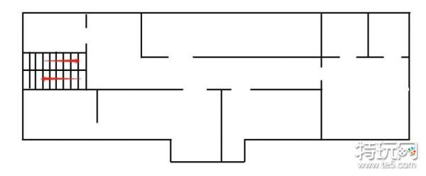 这是刚进大门左侧的图示,右边门直接可以上二层,如果有人在一层抢资源,如果自己没发现枪,可以直接上楼搜索,然后在等待敌人上楼就可以了。
