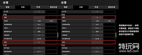 地图快捷键默认是“M”,这远远超出了我们左手所能按到的范围,而新出的表情功能比较鸡肋却占了一个很趁手的位置“~”,于是我们可以将地图快捷键改为“~”,这样有利于我们频繁的打开地图观察信息。至于表情快捷键,随便设置或者干脆不用都是OK的。