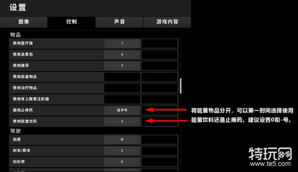 开发商为了节省按键的占用在游戏的快捷键设置上也做了许多的合并,比如跳跃与翻越共用“Space”,手刹与摩托车抬头共用“Space”,肩射与瞄准射击共用“右键”,能量类药品共用“0”,投掷类武器共用“5”等等。
