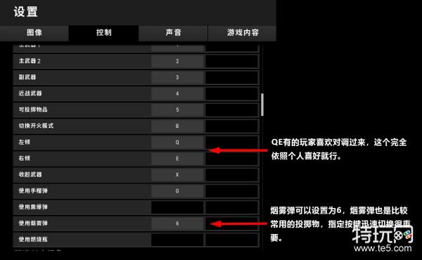 在默认设置当中,投掷物统一是按“5”进行切换选择的,绝地求生中有四款投掷物,这就意味着你选择一个要使用的投掷物最多可能要按3次“5”,这在紧张的战斗环境中是非常耽误时机的做法。默认设置中“G”是快捷切换手雷的按键,当然手雷确实是使用最多也最受欢迎的投掷物。不过现在烟雾弹也成为了一个实用性很好的投掷道具了,不管是铺烟跑路还是封烟救人,烟雾弹也需要最快的速度切换出来。因此,我们可以给烟雾弹单独设置一个快捷键,如果其他投掷物有需要也可以单独设置。