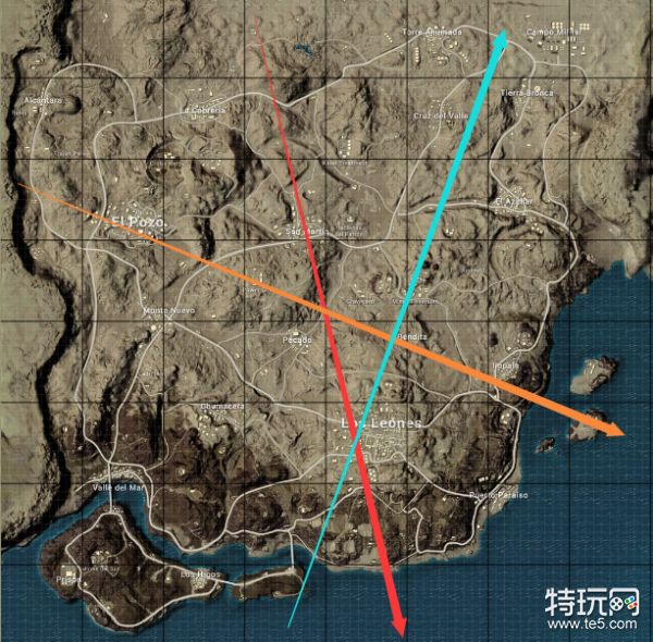 首先出港区向西方向的公路会经过狮之城,所以这条路走到底多半是黑了,建议走一半转山路。到达狮之城上方的山坡之后,继续向地图左边转移的话要避开Pecado及周边野区,向地图上方转移则要从豪宅和坟地之间的平缓地带穿过,建议补满状态之后速度拉满快速冲过去,途中碰到人千万不要停,就算队友被打下来了也不要回头,带着阵亡战友的遗志吃鸡!