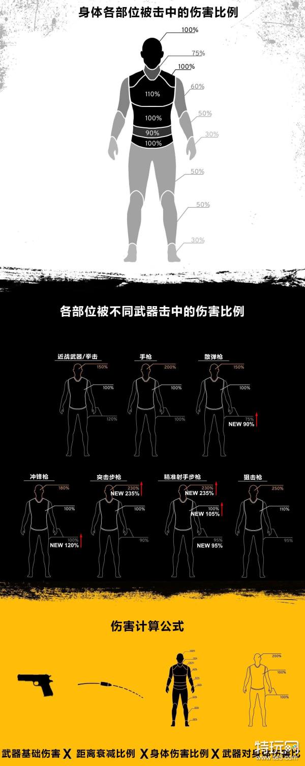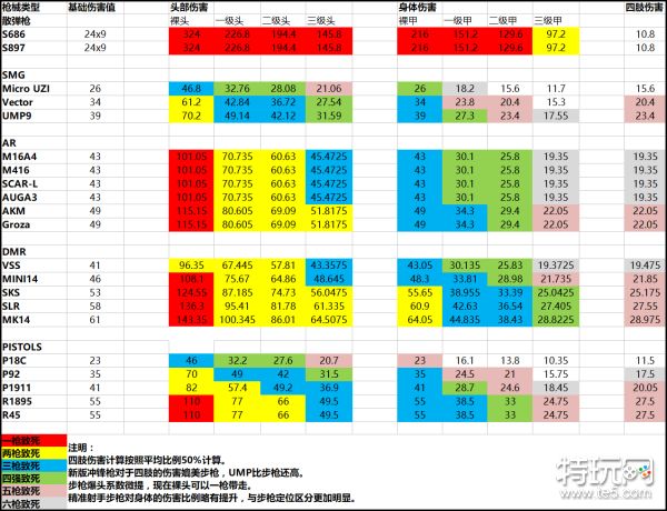 图一为枪械基本伤害数值,图二为伤害计算系数,图三则是K哥计算整理出来的实际伤害树数值。