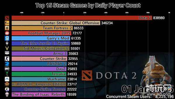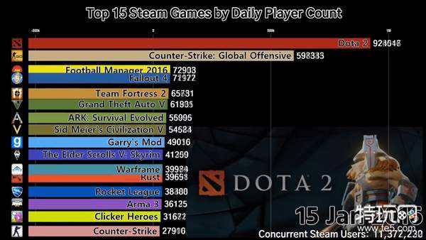 作为目前全球最大的PC游戏发售平台,Steam上的玩家电脑配置及游戏玩家日均在线人数变化,是游戏厂商优化游戏及开发新作的重要依据。近日,油管UP主“TheRankings”制作了2015-2018年四年间,Steam玩家日活最高游戏TOP15的动态变化,从中我们可以了解到四年来Steam玩家们的口味发生了怎样的变化,一起来看看吧。