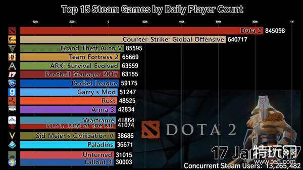 其他排名前15的常客包括《GTA5》、《军团要塞2》、《星际战甲》、《火箭联盟》、《方舟:生存进化》,有趣的是《足球经理》系列,每当前一作被挤出排名后,新作立刻顶了上来,该系列可谓是长盛不衰了。