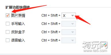 3、假如我们的表情输入快捷键被禁用,我们下拉列表,找到【图片表情】,勾选开启快捷键,并设置快捷键;