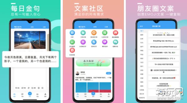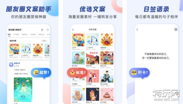 发朋友圈,如果不知道该怎么挑选文案的话,这款软件就可以满足大家,无论是发早安、晚安、问候语还是一些日常生活琐事,都会有专属的文案以及配图。