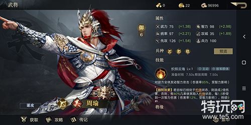 荣耀新三国中周瑜是东吴大都督他的技能可以对敌人进行全方面的灼烧,伤害出色,这篇荣耀新三国周瑜怎么样,将为玩家带来武将的详细技能属性介绍,让玩家更加了解武将。