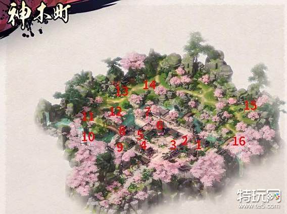 13、酒香四溢(大酒桶前) 14、西南角(枯树) 15、四方御神灯四个等中间)