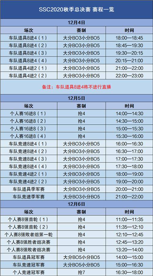 本次比赛除车队道具8进4外,其余赛程均将在虎牙直播QQ飞车官方直播间直播,12月4日首场比赛直播时间为当天晚间18:00,12月5日首场比赛直播时间为当天下午14:00,12月6日首场比赛直播时间为当天中午11:00。车手们在直播期间前往虎牙直播QQ飞车官方直播间观赛,即可抽取观赛奖励,参与弹幕抽奖更有机会获得永久赛车、座椅!