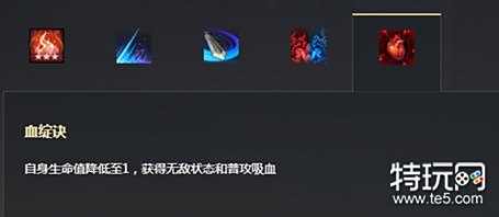 自身生命值降低至1,获得无敌状态和普攻吸血。