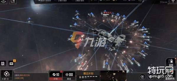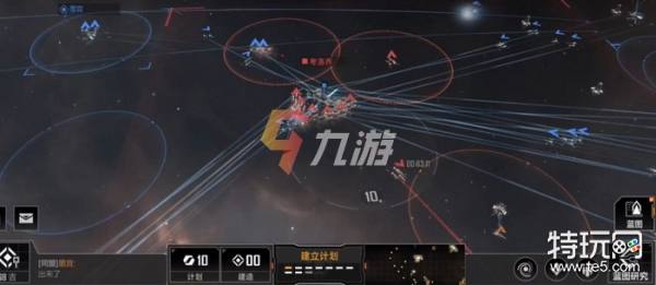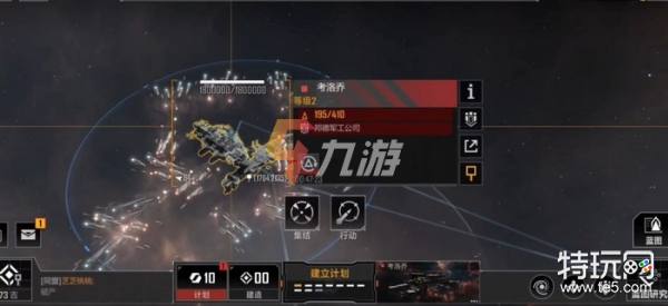 如图所示,我们可以看到许多圆圆的线圈。游戏中,玩家的所有操作都必须得在这个计划圈中完成。举个例子,玩家想派出舰队前往某个目的地,或者是派采集船去采矿,都需要在目标地点创建一个计划圈。