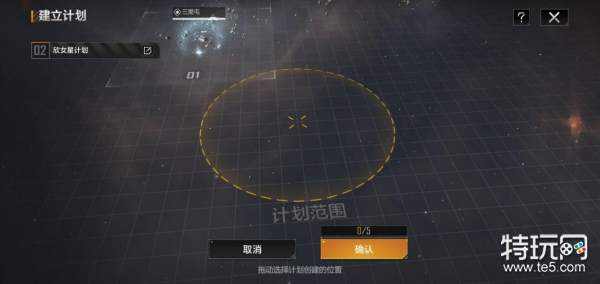 点击需要建立计划的区域,或是在目标区域直接点击[ 建立计划 ],随后点击“确认”按钮,即会在地图上出现一个白色的圆圈,代表开拓者您刚刚计划的区域。