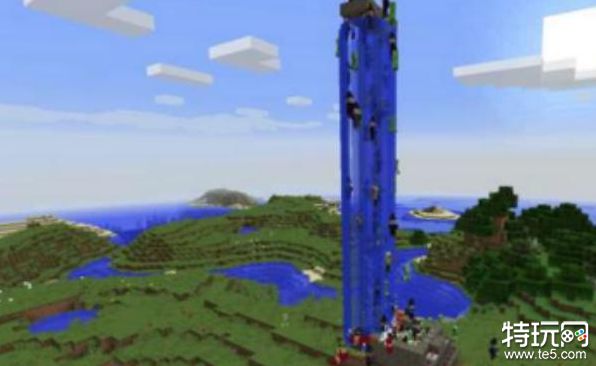 4、在顶部倒一桶水,并将多余的方块删除。