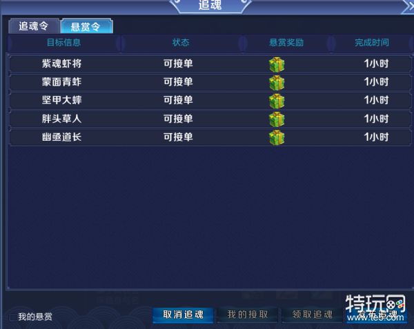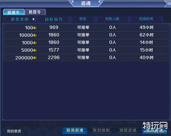 这次的悬赏令功能得到了比较好的提升,虽然取消了金钱的获得,但是增加了修为和风水元珠的道具还是比较的不错的~完成时间跟之前的差不多,也是一个小时,不过怪的左边还是比较的难找的~不过有大概的位置,只要小伙伴们仔细的寻找就能找到了~接下来就是追魂令,如果你想追杀别人的话,首先你要追杀的人必须是你的仇人就是你被他杀过,接下恩怨你才能发布追魂令来追魂他。