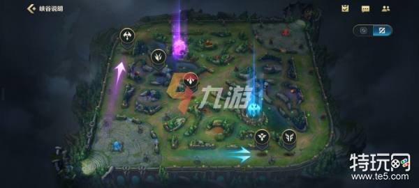 如上图所示,造型有点像未来守护者•杰斯所持武器的图标,或者说像一把伞一样的图标就是单人路。而形似草丛的图标则自然是打野路。均衡的对称的倒锥子图标则是中路。而造型上很像“晴天娃娃”的则是辅助,造型上很像羊角的图标则是射手路。