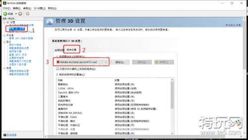 3、然后选择左侧的管理3D设置,点击右侧程序的设置;