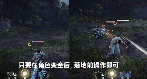 振刀方法:对方闪步动作结束,跳跃动作达到最高点的时候,振刀即可