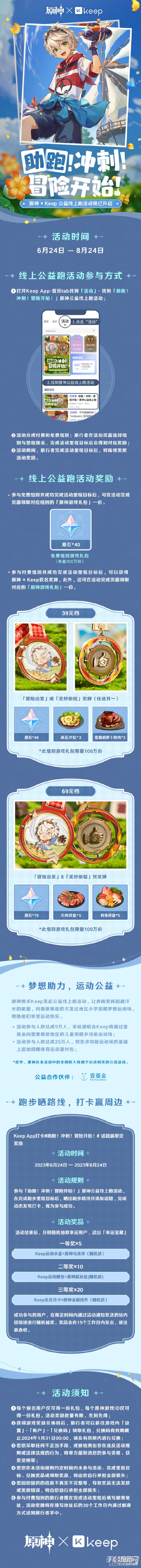 《原神》Keep活动期间,通过以下方式参与就可赢取原石、联名奖牌等专属活动奖励: