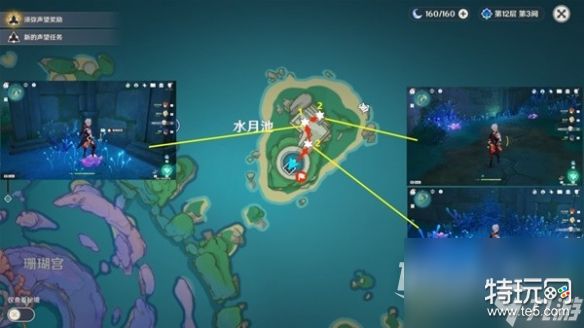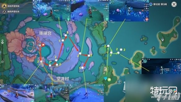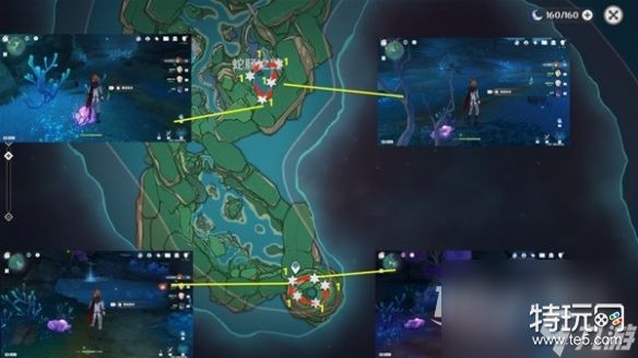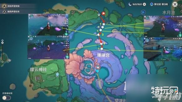 珊瑚宫东南部,整体的分布较为分散,但是也并不是完全不方便,我们还是可以沿着一定的路线进行采集,不过最后的一块区域,需要我们完成指定任务以后,才会解锁