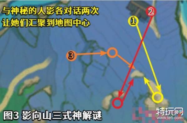 解谜攻略:与三个谜样的人影各对话两次,让她们汇聚在狐狸雕像处。