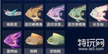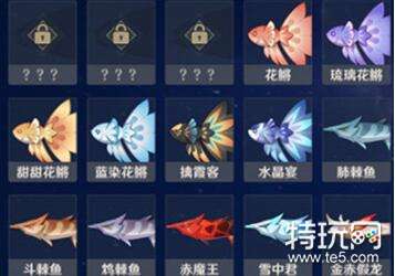③璃月有肺棘鱼、斗棘鱼、鸠棘鱼、金赤假龙、锖假龙、流纹褐蝶鱼、流纹京紫蝶鱼、流纹茶蝶鱼、长生仙、炮鲀、苦炮鲀;