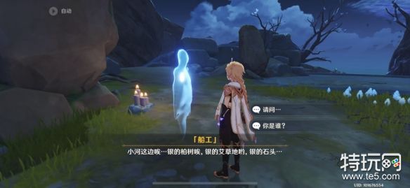 当玩家送走岛上所有的【昔日幻影】后,在东边跳入山底,飞到海边位置,即可在山脚下找到船工幽灵,与【船工】对话