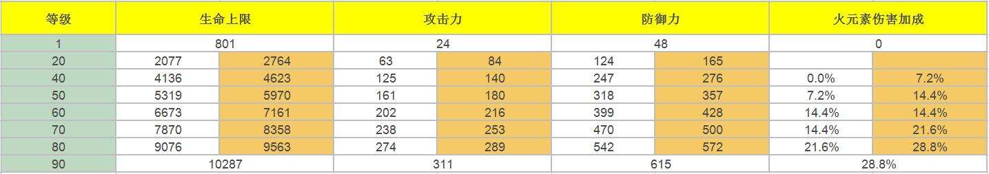 普通攻击·砰砰各等级数据一览: